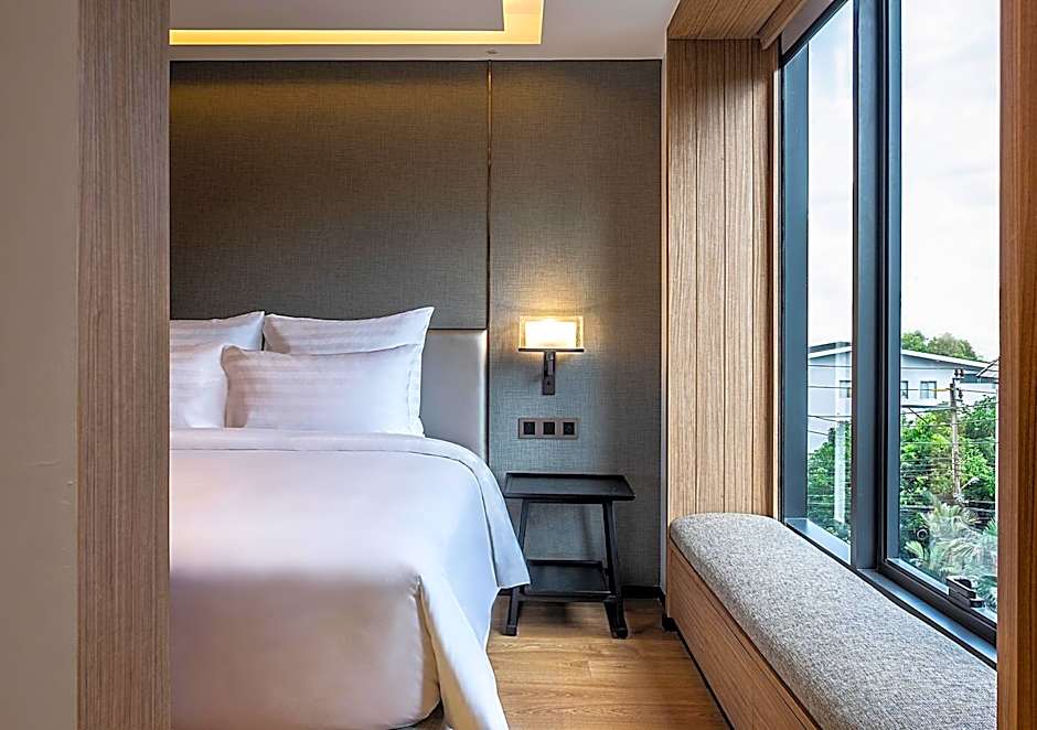 This deluxe king room features a microwave, air conditioning, bathrobe, complimentary mini-bar in room, and complimentary Nespresso machine for capsule. Welcome drink signatured Homm Kombucha for 2 people.